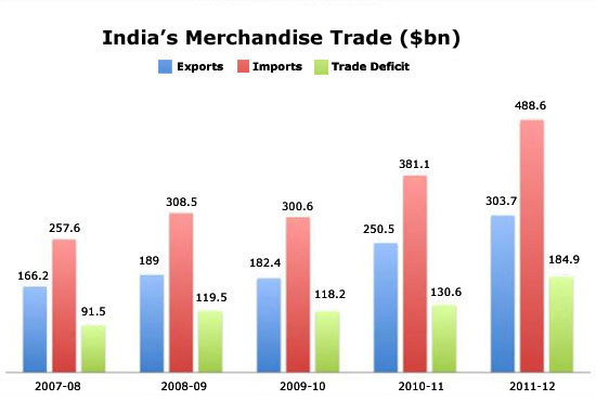 It rose from $166 billion in 2007-08, to $189 billion in crisis year 2008-09 and fell marginally to $182 billion during 2009-10. It has since risen sharply to $251 billion in 2010-11 and a target-exceeding $304 billion in 2011-12.