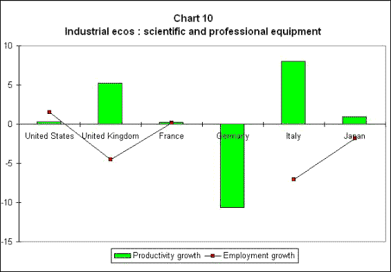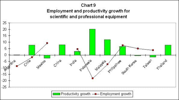 An exactly similar pattern prevails in developed industrial countries for this sector (Chart 8), suggesting that this is not a pattern specific to developing country producers in this sector. Charts 9 and 10 suggest that similar inferences can be made also for the category of "scientific and professional equipment" production in developing and developed countries.