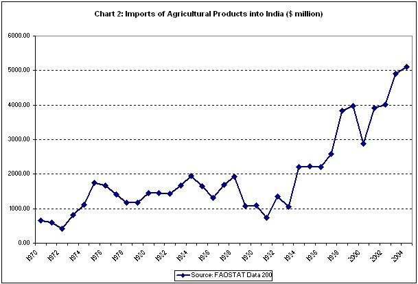 The relevant change in the environment was the transformation of the world of international finance that, for the first time, provided ''emerging markets'' like India access to private international finance. It is now widely held that the Indian government exploited that opportunity during the 1980s, to overcome the development impasse of the 1970s. Deficit-financed expenditure was used to accelerate non-agricultural growth, and the resulting disproportionality between non-agricultural and agricultural growth was managed by using imports financed largely with external debt to change the structure of domestic supplies and dampen inflation. And as Chart 2 indicates this was even more true of the 1990s than was true in the 1980s.